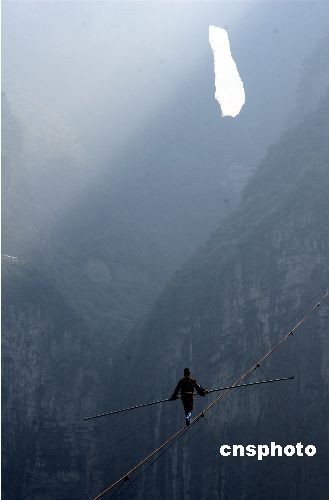 新疆"达瓦孜"传人张家界挑战极限坡度"失手"(图)