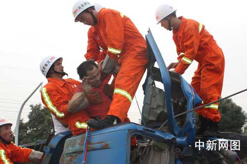 中新网宁波10月22日电(何蒋勇 高姚军)今天下午13时40左右,位于61省道浙江省余姚段发生一起四车相撞交通事故。经过消防队员近40分钟的救援,被困的4名伤员被成功解救。事故共造成两人死亡,三人受伤。
