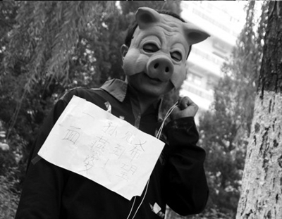 小刘说,他也是艰难考虑了一年才作出这个决定的。他说,戴面具不是因为怕羞,而是怕给家人带来影响。至于专门挑选的猪头造型的面具,则是“因为我也知道自己的行为很傻”。小刘的行为引来了路人的关注和质疑。“男儿膝下有黄金,你这么做都对不起父母,给我起来!”一位老人严厉地说。面对质疑,小刘一再表示,要跪到坚持不住的时候再走,“我这一辈子只做这一次”。直至下午1点,小刘最终放弃了跪求,休息过后自行离开。
