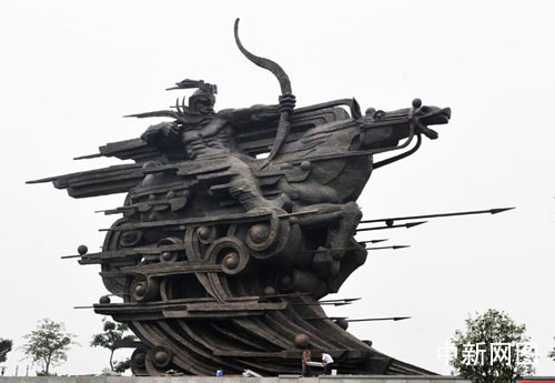 300余吨巨型雕塑《钱王射潮》杭州揭幕