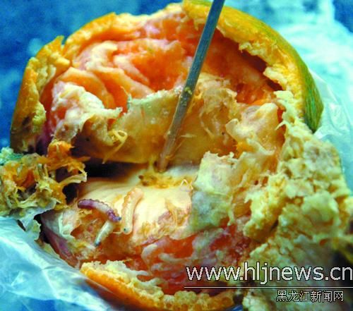 “我吃到了‘蛆柑橘’。”22日13时许,哈市南岗区燎原街居民梁女士给记者打来电话:“我在市场上买到了‘蛆柑橘’,而且我和儿子各吃了一个。发现柑橘里面有蛆之后,我们去医院做了检查,医生说没什么大事,让回家观察。”