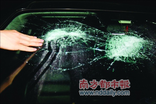 冲突中,省检察院女干部的车窗玻璃被砸烂。高贵彬摄
