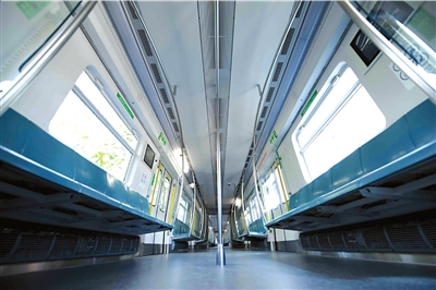 4号线新车采用大通道,扶手暂无吊环,供暖装置藏在座位下。