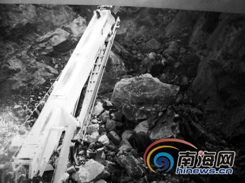 据了解,事发地在昌江七叉镇坎担一石场,距国投采石场有3公里。知情者称,昨晚,石场放炮炸石后就收了工,今天上午7时许,石场的5个工人到现场用电钻碎石,在作业期间,突然上方被炸的石体松动,石块从半山坡上滚下。