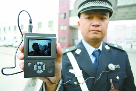 这部看上去类似MP4的“摄像头”,学名叫“音像记录仪”,带有一个高清的显示屏,可以实现同步录像、录音、拍照和PMP(媒体播放器)扩展功能,不受白天、夜晚限制,能够连续录像8小时,存储照片2万张。每部在千元以上,专门用来现场取证。