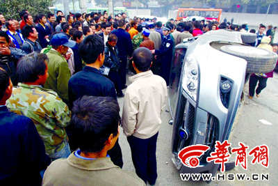 私家车主撞倒农民工后打人 车被围观者掀翻(图)