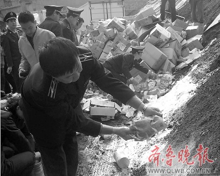 据介绍,截至10月30日,青岛市工商系统共在青岛各县市区查扣不合格奶粉2160.26公斤,液态奶236.515公斤,企业自行下架、召回不合格奶制品5834.475公斤。此次销毁工作是青岛市针对不合格奶制品的第一次集中销毁,以后会根据查获不合格奶粉的总量继续采取合适的方式进行销毁。