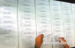 高速公路执法队员整理“渝B27123”货车超载处罚通知书的存根