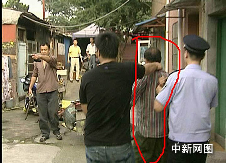 红色圈中的男子在来该窝点卖死狗肉时被蹲点的民警当场抓获