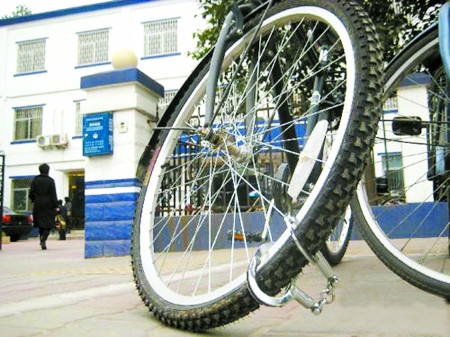 “派出所门前手铐锁自行车”