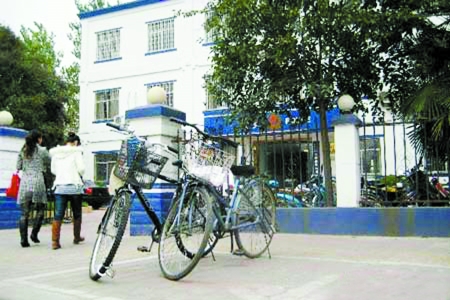 昨日下午6时许,按照网友提供的图片,记者找到了郑州市北林路派出所,此时门口已经没有用手铐锁的自行车了。