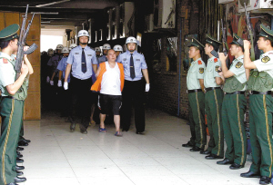陈明涉黑成员被押往公判现场(资料图片 来源:重庆晚报)