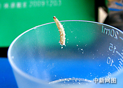 10月14日早晨,王女士给醒来的宝宝冲泡奶粉。她拆开了一包400克装的“金装多美滋学1加”奶粉,朦胧中看到一个东西在蠕动。挖出来一看,是条1.5厘米长的粉白色肉虫。