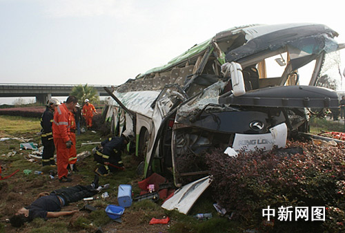 图为支离破碎的湖南牌照客车。吴小磊 摄