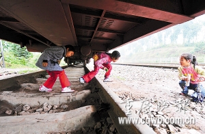 回家的感觉本是幸福的,可荣昌县安富镇杨市村等4个村村民却很难过:不管男女老少,高矮胖瘦,也不管推自行车还是提行李,都得钻过1列横挡路中的火车——从车厢这边钻入距地约30厘米高的空隙,摸索到车厢那边,时有人被撞得头破血流。