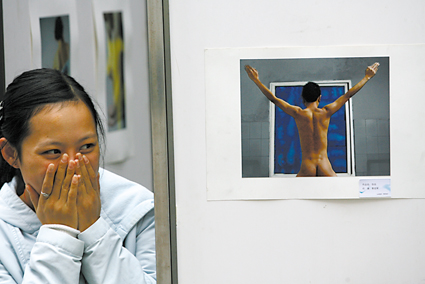 据展览的主办者吴俞闲介绍,他们都是广告摄影专业06级的学生,新学期,他们接触到了人体艺术这门课程,同学们表现出了极大的热情,商量着要试拍几张人体艺术照片。一开始,他们在校园内广发传单,希望有志愿者报名当模特,但令他们没想到的是,几周下来竟然一个报名的人都没有。“学生们都不太了解人体艺术!”小吴称,大家后来一致决定,找不到模特就自己拍自己,而且拍出来的作品要公开展出,让大家都认识人体艺术的魅力。