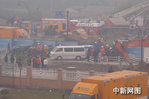 中新网杭州11月16日电(记者 龚读法 实习生 王磊 姜越潮)2008年11月16日上午9时15分,浙江省杭州市萧山区地铁坍塌现场,驶进一量殡葬专用车,救援工作有序展开。16日上午11时将召开最新救援工作新闻发布会,通报最新救援情况,并将在16日下午公布下一步救援方案。