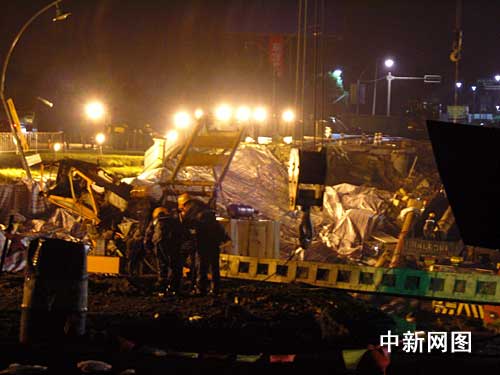 中新网杭州11月17日电(记者 龚读法 实习生 王磊 姜越潮)11月17日晚,浙江省杭州市地铁施工塌陷事故现场,下起了小雨,工作人员立即组织抢铺帆布,避免因雨水浸泡导致出现新的坍塌现象,阻碍救援工作。