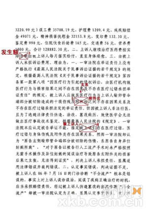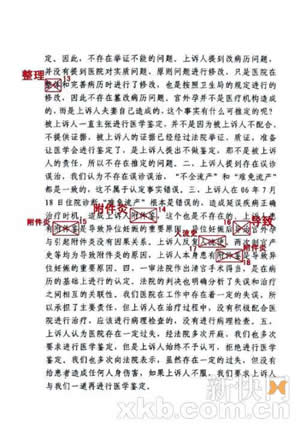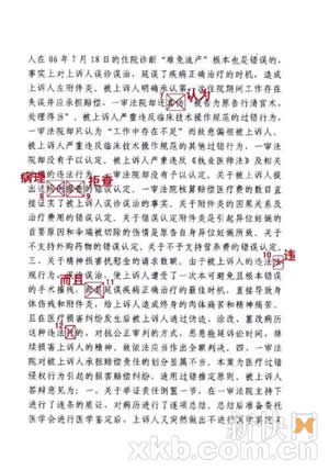 记者在判决书扫描件中的确发现不少笔误,比如把“导致”写成“导治”、“人工流产”写成“工人流产”、“附件炎”写成“附件验”和“附件鉴”、“被上诉人”写成“被上诉们”、“认为”写成“真伪”,“拒查”写成“据查”、“整理”写成“整体”、“人流史”写成“人流使”等。