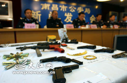 11月17日,南昌市公安局举行新闻发布会,通报破获的贩卖毒品、枪支案