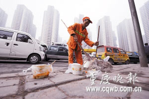 “他们吃了就往地上甩,从这里到转盘,我扫一趟约1小时。”昨晨8时许,北环收费站外清洁工彭昌德说。他说的这段路不到200米,他凌晨5时就前来扫街,来回清扫了8趟,每趟清扫垃圾超过15簸箕,满满1清扫车。