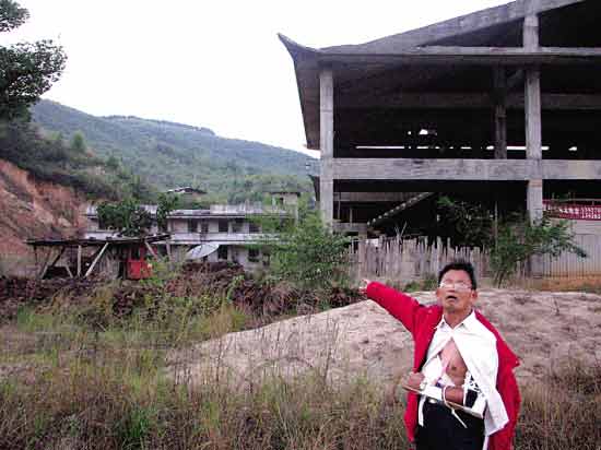 征地项目如期开建,不服气的丘家厉一直上告。“我终于在2004年11月1日盼来了区国土局的停工协议书,可是工程却依然照常开工,”丘家厉告诉记者,“直到我找到省国土厅,工程才于2005年9月7日正式停工,可是直到现在,公墓建筑依然没有拆除,土地也没有归还农民。”