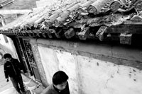 从第一座正殿旁边的小门进入寺内,路过的红色院墙从上到下裂开一道大缝隙,已经摇摇欲坠。进入寺后,眼前更是一片凋零。寺朝东向,是十分规整的两进四合院。眼前所有殿室的灰色屋瓦几乎都变成了半黑半灰色,杂草丛生,不少地方瓦片已残缺不全,“下雨下雪的时候,屋里就会漏水,”园内负责房屋的工作人员冯先生告诉记者,“园里有自己的小施工队,做些力所能及的修修补补,因为能力有限,也只能是尽着那些漏得严重的补。”