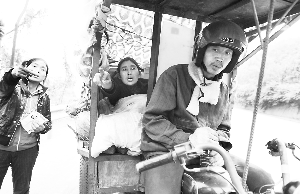 为赶路,他们每天驾驶10小时以上是“最低标准”。三轮车没有驾驶室,男人们不得不把棉衣包在头上抵御风寒。为减少开支,每人一天最多吃两顿饭,临行前,每家都准备了几箱方便面,因为没有热水,方便面大都被干啃下肚。睡觉是走到哪睡到哪———男人让出车厢在公路边上打地铺,女人小孩在车厢内将就。洗脸、洗头,更是奢望。十多天下来,每个人的脸和手都已干裂,风刮得生痛。