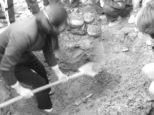妇女当众挖古墓