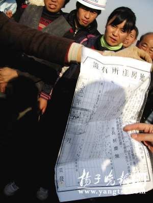 挖墓村民拿出土地证。范晓林 任国勇 摄
