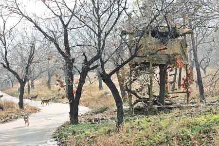 在野狼谷的中心区,记者见到了此次为挑战者搭建的“鸟巢”,说是房屋,就是一间用钢管搭建、稻草围苫而成的距地面3米多高的茅草棚。在野狼谷的3天时间里,挑战者都要在这个“家”中度过。