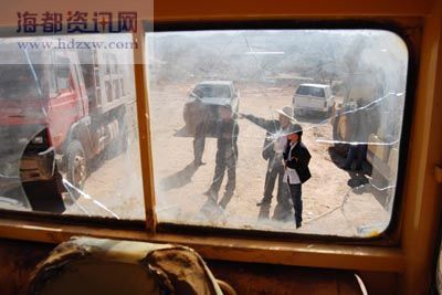当日上午,事发工地已经暂停施工。4辆施工车都遭到不同程度的破坏,有的驾驶室玻璃被砸,有的轮胎被刀砍。一片已经做好的路基模板,也遭到破坏。