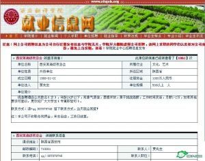 该帖昨日(3日)由网友“莪承認莪佷曂”发表在“猫扑大杂脍”上,除了一个题目之外并没有其它的文字描述。不过从其贴出的页面截图所显示的该“招聘单位”的基本信息可以看出,发布招聘信息者标榜“注册资金1000万人民币、性质属外资单位、规模达500人以上”。而比较有趣的是,其所属行业却标着“文化、艺术”。