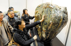 一位工作人员现场向好奇的市民演示,只见他点燃一根“白发”的一端,而“白发”的另一端却冒出了烟,令人大呼神奇。收藏者朱先生说,去年在成都,一块这样的怪石,曾开出了1000万元的天价。 (作者:曹嘉智)