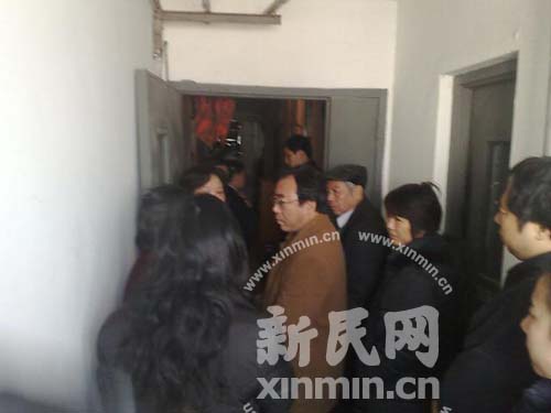 鲁班路煤气中毒事发居民家中,周围邻居在现场 新民网现场图片
