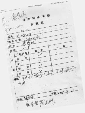 新余考察团在《意见反馈表》上称“服务热情周到”。