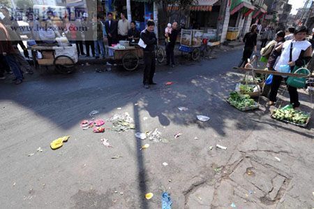 农民工老熊是现场目击者,他向记者描述了事情的经过:当时老妇站在泉头超市门前卖气球,10时左右,一辆工具车开过来,听说是城管来了。