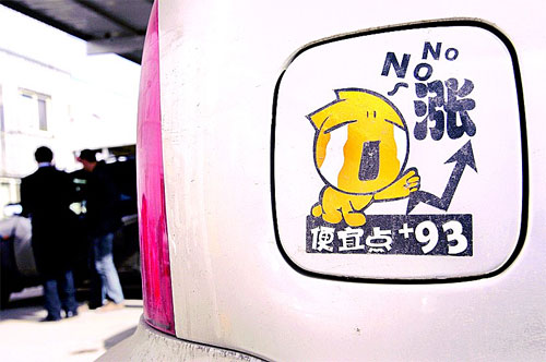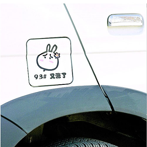 昨日,在西安北郊一停车场内,一辆车的油箱盖上贴着卡通小人为汽油涨价而痛哭的表情,令过往观者忍俊不禁。无独有偶,在西安南二环路边上,一辆车的油箱盖上,小兔子也皱着眉头,一行小字“93#又涨了”。