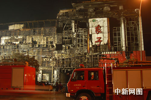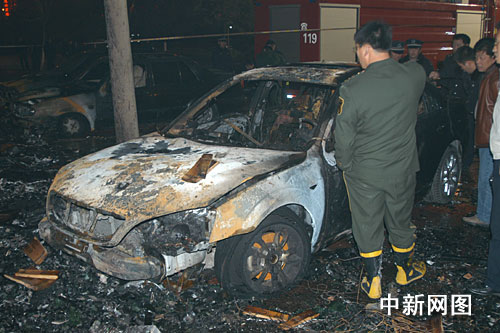 记者在晚七时赶到现场后看到,两座着火的楼房外墙一片乌黑,停在楼下的五辆汽车都被大火烧毁。起火的小超市内,所有商品都被烧尽,货架有的甚至被炼成铁水。在现场路边停放有两辆运尸车,及至近九时抢险工作结束时,记者看到先后有七具尸体被装入车内,据民警讲,死者为三男四女。(完)