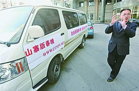 “向央视春晚叫板,给全国人民拜年”,并标了山寨春晚网址。11月28日,北京一小区的楼下,一辆写有挑衅口号的面包车非常惹眼。这辆“牛车”车主四川小伙老孟说,要自办一场草根参加的山寨版春晚,时间与央视春晚同步,通过网络直播,目的就是向央视春晚叫板。
