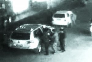 5人将关键塞进一辆轿车。 监控录像截屏图