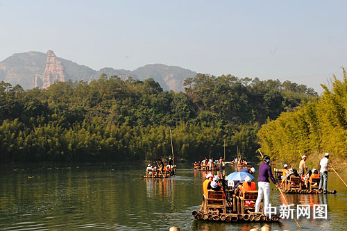 广东丹霞山竹筏漂流为游客饱览丹霞添新亮点(图)