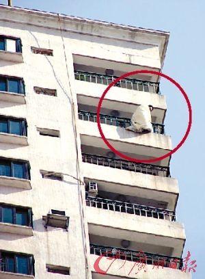 “5时16分我们接到报警,5分钟后我们赶到现场时,他已经爬上去了。”常平消防中队的救援战士介绍说,他们赶到现场时该男子的身体已经站在了阳台外面,他用双手抓着阳台的栏杆,身上裹着一床白色的被子,身体还不停地摇摆。