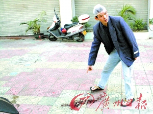 昨日上午11时许,记者同苏成营一起,到三水公安分局布心派出所,但该名便衣警察不在现场。苏成营提出,他因为受伤需要治疗和至少休息一个月,同时家里2个孩子要养,因此向派出所索赔5万元以上。但派出所民警昨天没有明确答复。(记者杨波摄影报道)