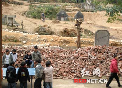 这所学校的张校长感到挺无奈,原来,由于占地40亩的新操场明年才能建成投入使用,为了不耽误学生的体育课,因此临时启用了这片空地作为操场,这块空地,是打算用来修教师宿舍的,因为按当地习俗,坟只能在农历二十四节的“大寒”期间才可动迁,因此,这些还未迁走的坟墓最也要等到明年1月下旬才能迁走。