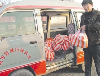 这辆昌河面包车两扇车门上均喷有“城市管理行政执法”字样,车头喷着“执法”红字,“法”字已脱落不清。民警打开车门,发现后排车座和前排副驾驶座上,堆放着一袋袋的蒸馍。