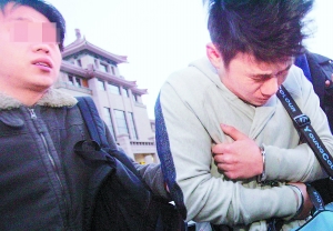犯罪嫌疑人(右)今晨被押解回京 张玉军摄