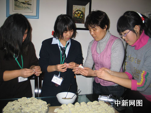 中新网西安十二月二十一日电(记者 冽玮)“我知道今天是中国传统节日——冬至,大家都会在一起包饺子,我们想吃饺子……”十七岁的日本高中学生市井亚子用英语、日语和汉语,夹杂着手语,不大流畅地表达着她和同伴寺本编绘的愿望,接待她们的陕西师范大学附中高一年级二班的杨肖影和则爽快地答应,饺子OK,一切OK。