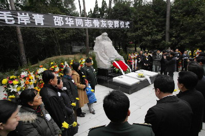 “你们的一生,是平凡而伟大光辉的一生……”在毛岸青、邵华同志的骨灰安葬仪式上,毛新宇动情地说:“感谢你们生我养我,把我培养成一个优秀的革命军人和共产党员。我一定永远以你们为楷模,牢记你们的教诲,继承你们的遗志,为我们党、国家和军队的建设作出应有的贡献。” (记者 周小华)