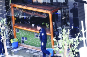萨尔瓦多咖啡吧正门右侧是居民小区的大门,由于爆炸事件,警方已经将这道门封闭,在小区居民徐先生的带领下,记者越过警戒线从另一个门绕到了咖啡吧的后面。记者发现这间咖啡吧没有后门,但在离地高约2米的地方有两个窗户,左侧窗户完好无损,而右侧窗户有一块玻璃已经碎裂,散落在地上,原来安装在窗户玻璃中间的排风扇也掉在了地上。